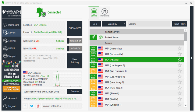 而且会自动根据您的所在地来推荐最佳的服务器,您也可以很简单地切换想要连线的服务器。